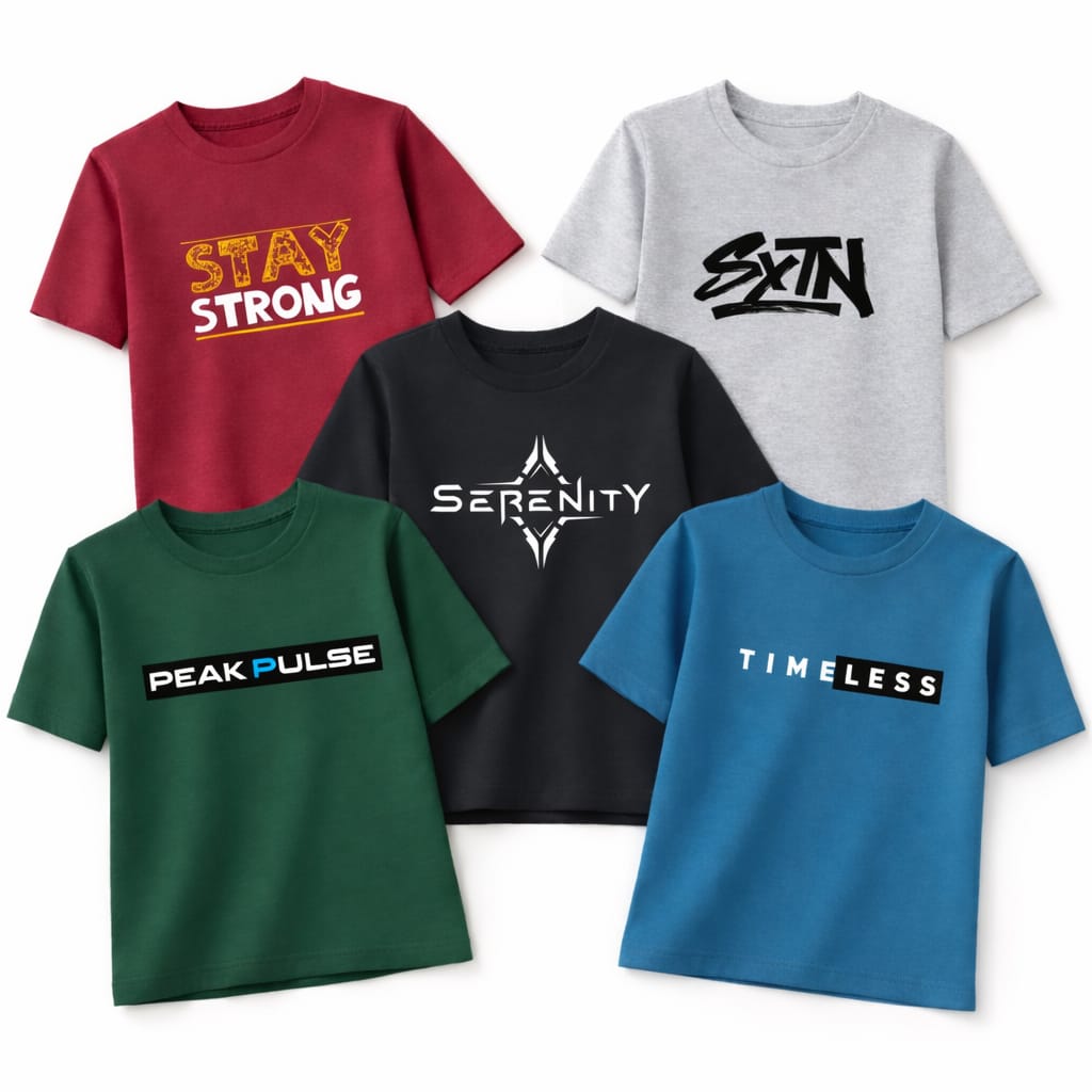Kids Tees (Pack Of 5) Stay Strong, Peak Pulse, Serenity